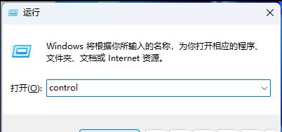 2. 运行窗口,输入【control】命令,按【确定或回车】可以打开控制面板;