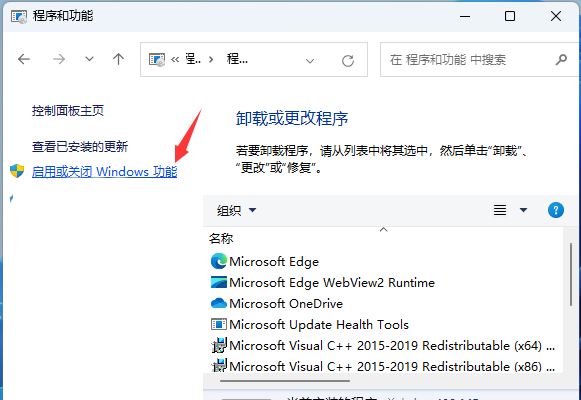 4. 程序和功能窗口,左侧点击【启用或关闭 Windows 功能】;
