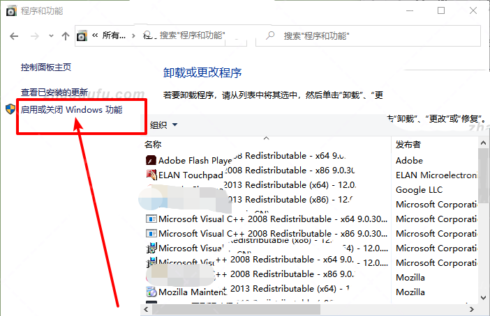 3. 程序和功能窗口,点击左侧启用或禁用Windows功能;